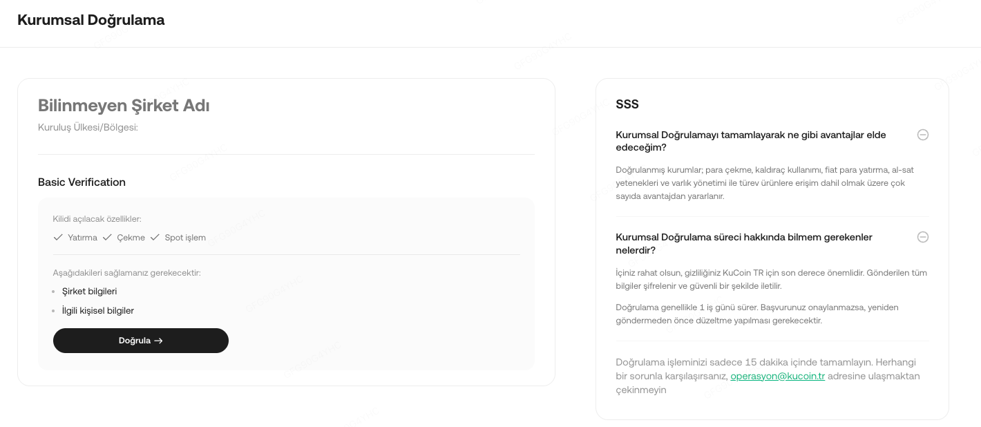 Institutional Verification, a core KYB (Know Your Business) measure, is KuCoin TR's dedication to regulatory compliance and combating cybercrimes like fraud, money laundering, scams, and terrorist financing. As such, it is an extension of KYC (Know Your Customer) procedures. Here’s a detailed guide on how to initiate Institutional Verification (KYB) on KuCoin TR platform.