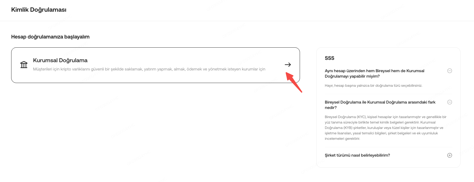 A: Individual accounts and institutional accounts cannot be converted between each other. If your account has completed individual verification, it cannot undergo institutional verification. Instead, you will need to register a new KuCoin TR account to verify it as an institutional account.