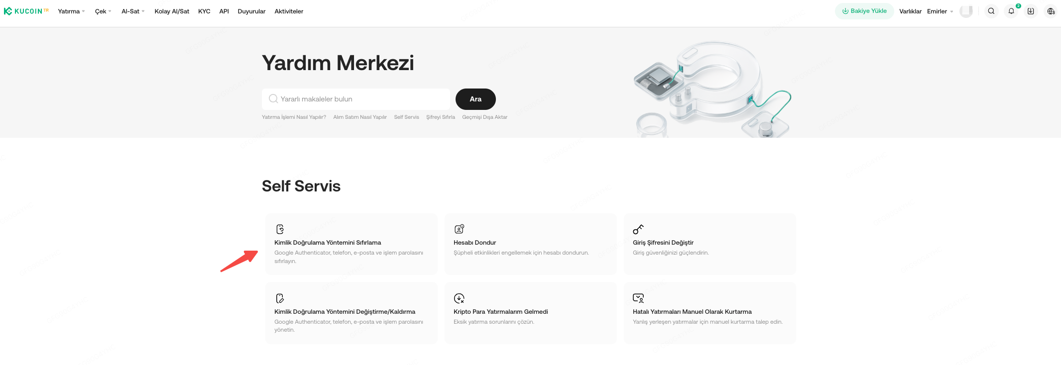 Step 1: Head over to KuCoin TR's Help Center and click on 'Reset Authentication Method'. You may also click here to access the 'Reset Authentication Method' page.