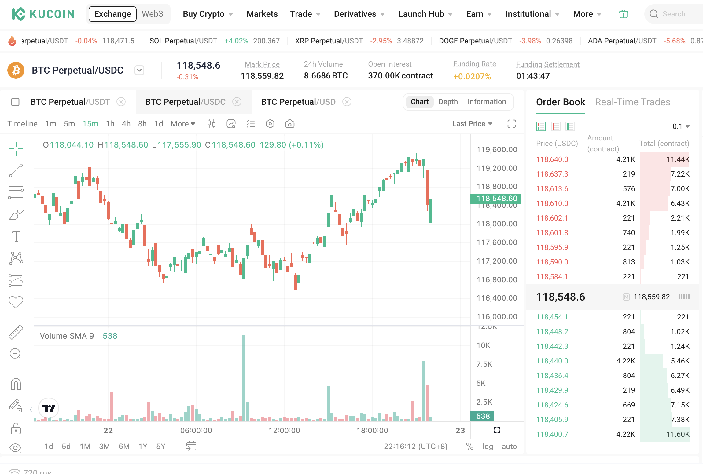 Çeşitli Ticaret Çiftleri:KuCoin, geniş birvadeli işlem çiftleriseçkisi sunar. Bu, Bitcoin'in ötesinde birçok popüler kripto para birimi için sürekli sözleşmeleri içerir; bunlar arasında Ethereum (ETH), Solana (SOL) ve USDT karşısında diğer birçok seçenek bulunur. Bu, stratejilerinizi çeşitlendirmenize ve deneyim kazandıkça farklı piyasaları keşfetmenize olanak tanır. Bitcoin'in kendisi içinBTC/USDTve hattaBTC/USDgibi çeşitli çiftler bulabilirsiniz ve tercih ettiğiniz teminata göre seçenekler sunar.