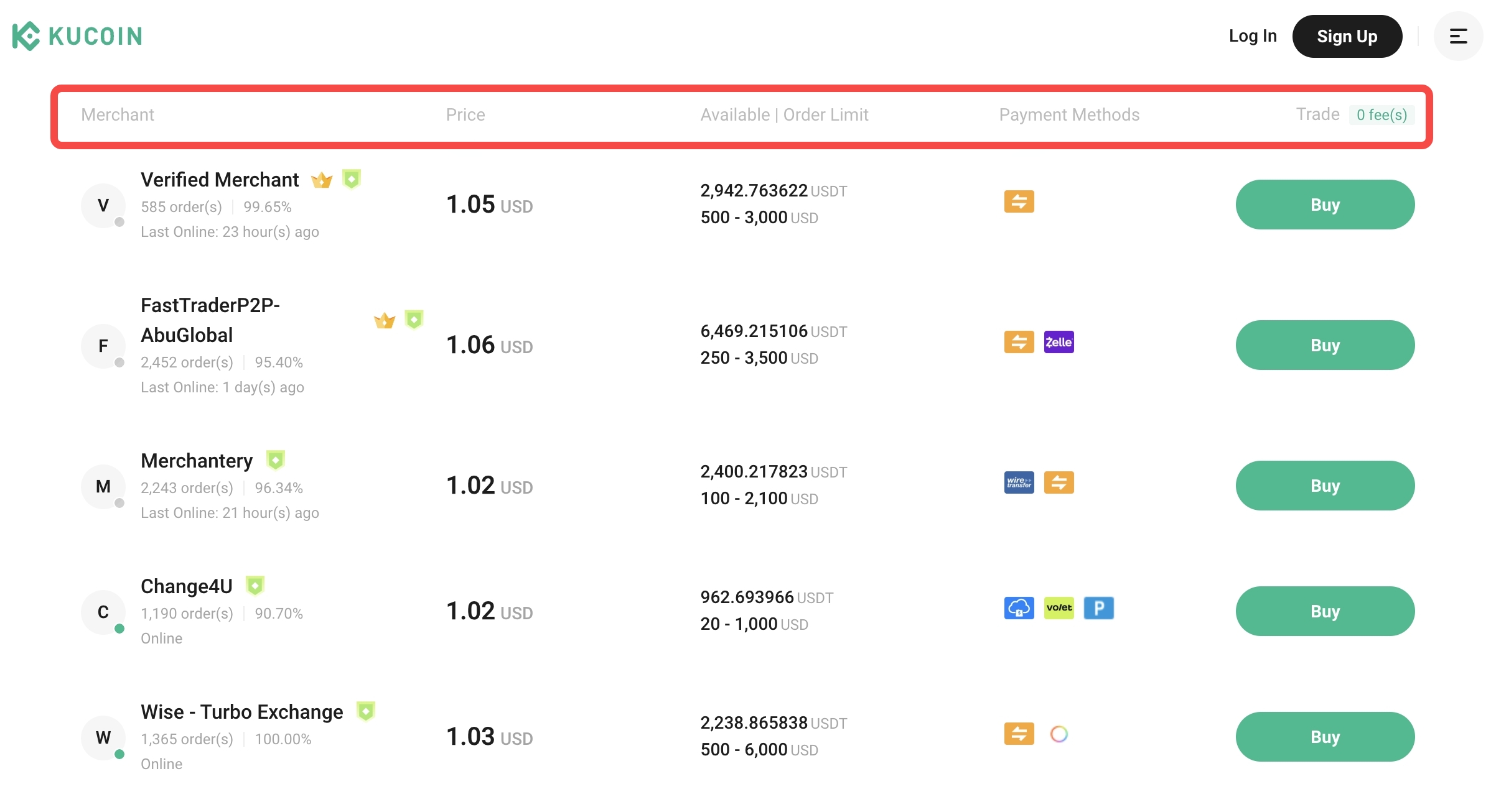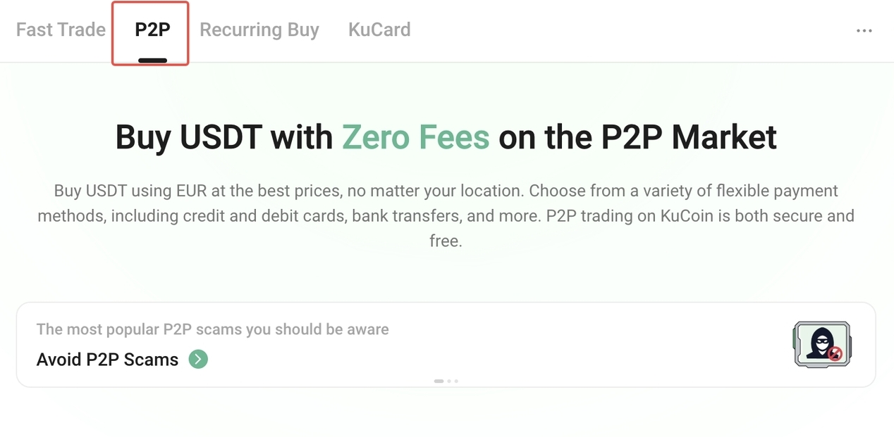 KuCoin'in P2P platformu, sıklıkla sıfır KuCoin işlem ücretiyle, yerel para biriminizi kullanarak diğer kullanıcılardan doğrudan Bitcoin almanıza olanak tanır.