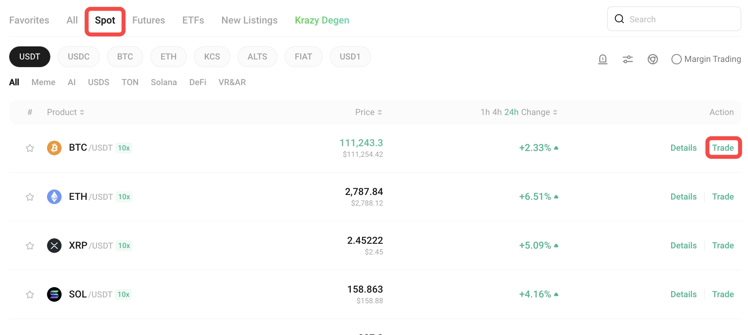 3. Ticaret Yoluyla Kripto Satın Alma (Spot Market)