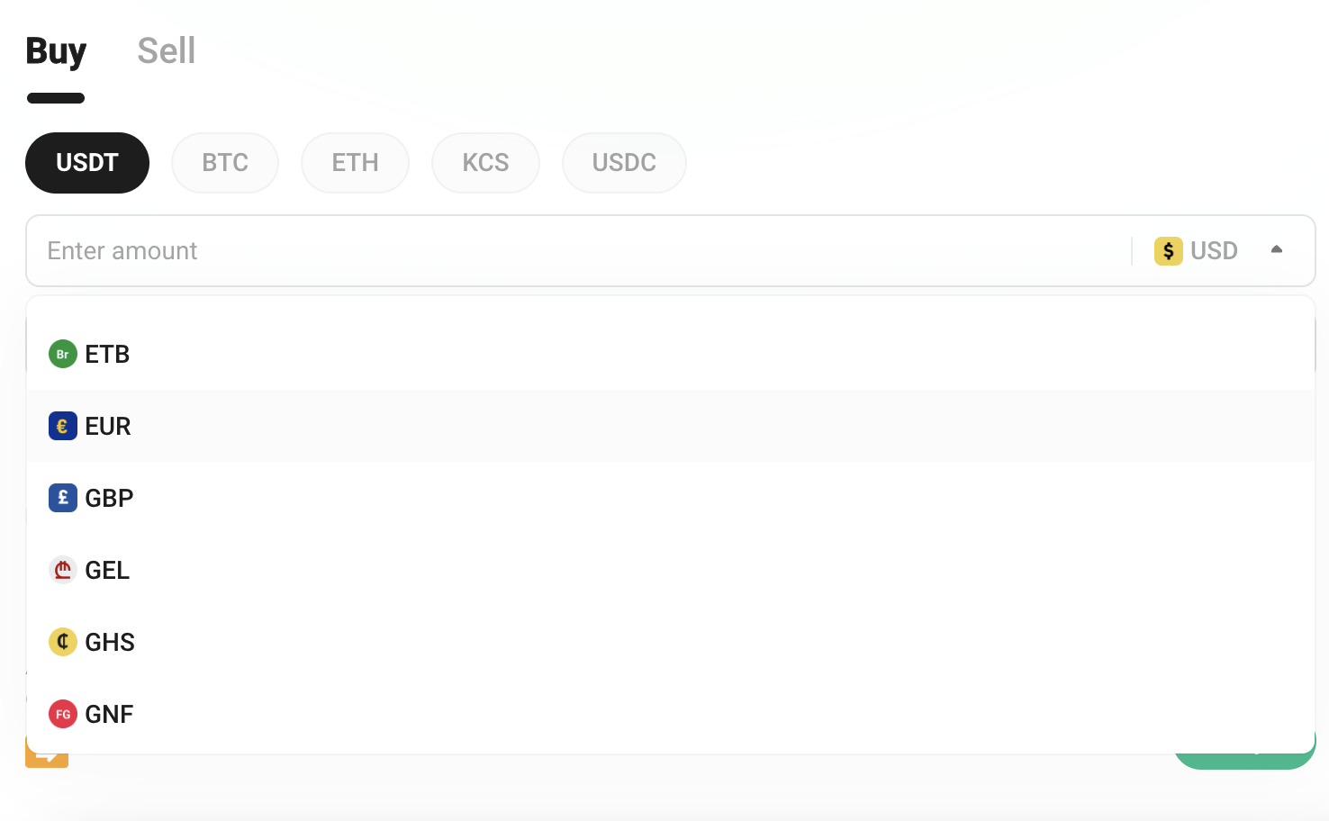 KuCoin hesabınızda başka bir kripto para (örneğin, ABD dolarına sabitlenmiş USDT gibi) bulundurduğunuzdan emin olun.