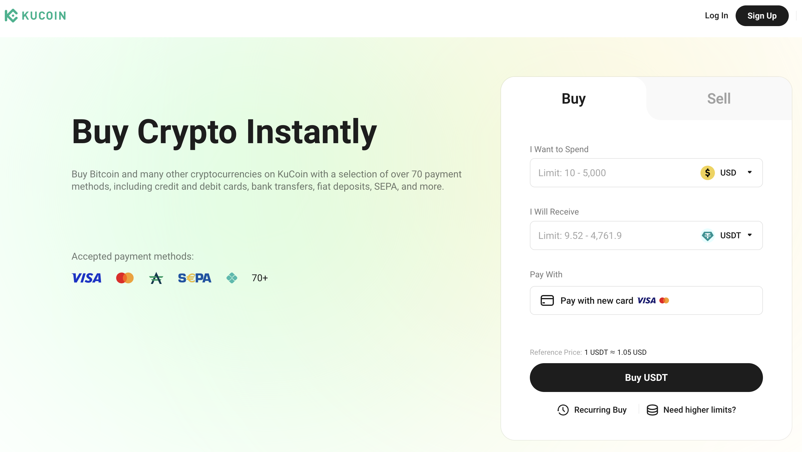 Çeşitli Anlık Ödeme Seçenekleri:Tanıdığınız debit/kredi kartınızı kullanmayı veya güvenli eşler arası ticareti tercih etmenizi sağlayan birçok yol sunuyoruz. KuCoin, Bitcoin'i cüzdanınıza neredeyse anında almanızı mümkün kılar.