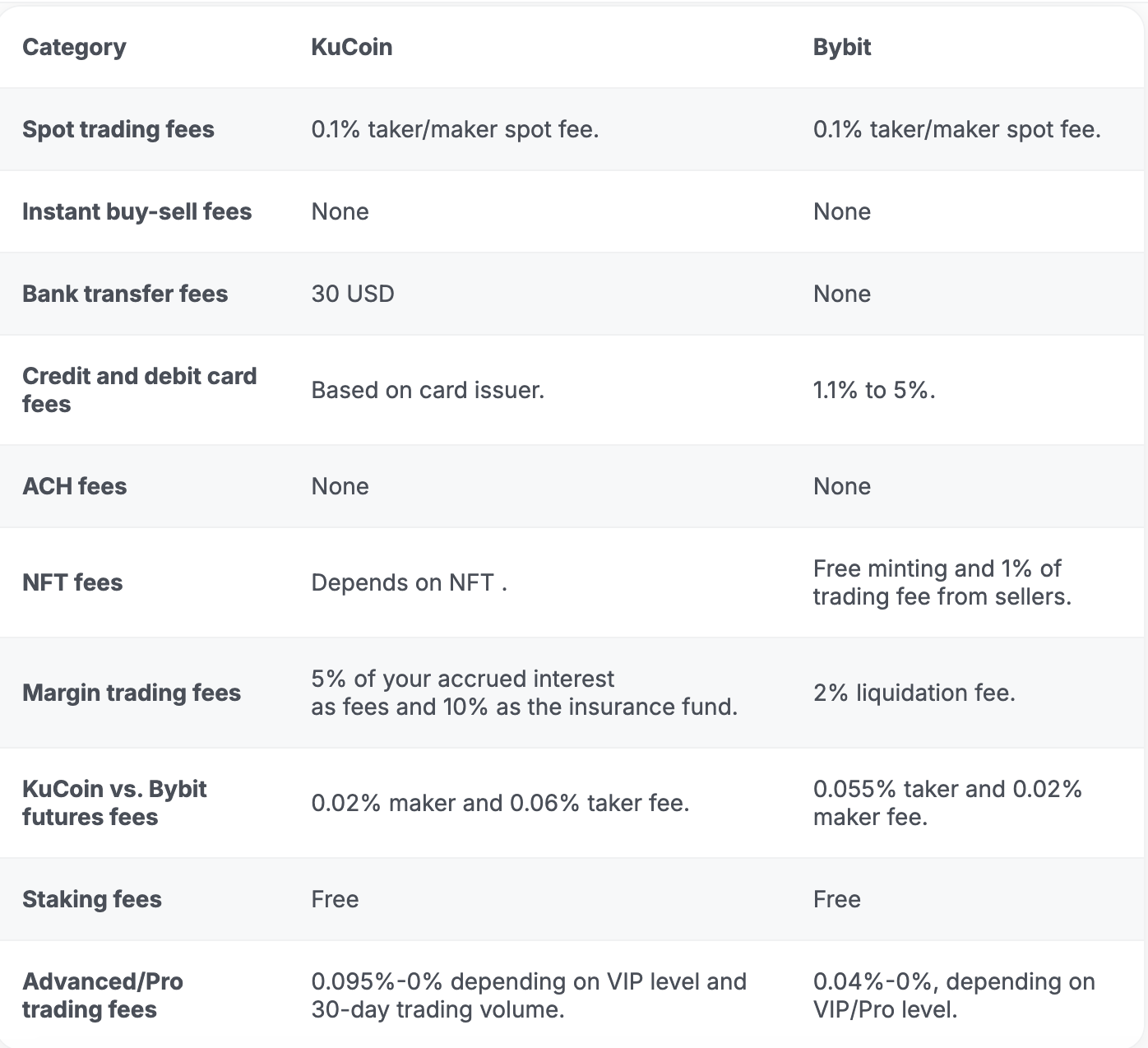 Bybit ve KuCoin mevduat ücretleri ve diğer komisyonlar| Kredi: Kyrrex