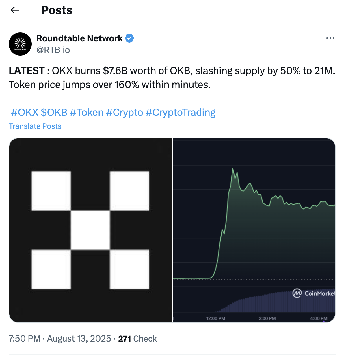 [3] TheStreet Rountable -OKX'in Yerel Token'ı Büyük Token Yakımının Ardından Tüm Zamanların En Yüksek Seviyesine Ulaştı, 13 Ağustos 2025