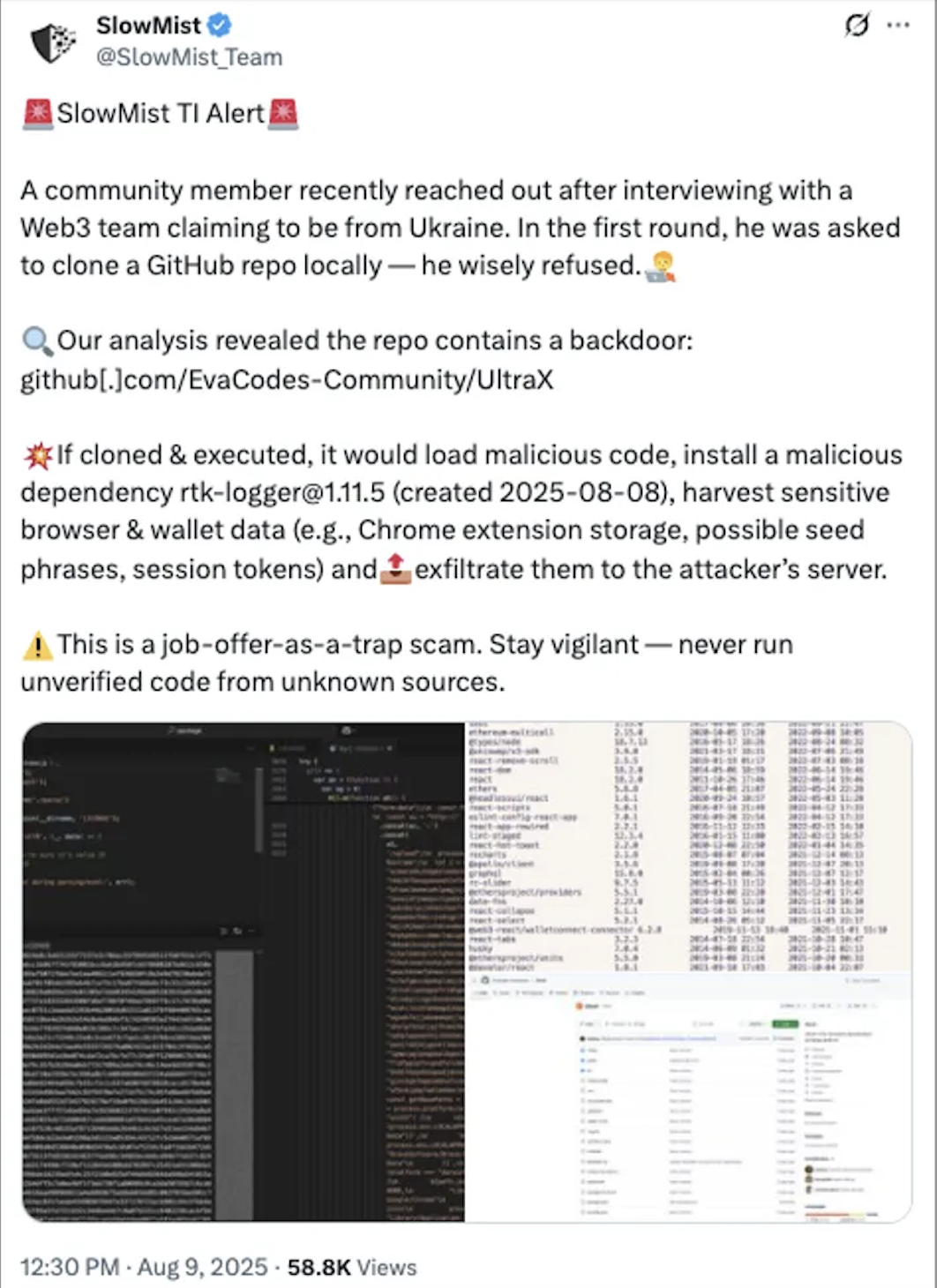 SlowMist -Bir Tehdit Raporu: Web3 Mülakat Dolandırıcılığını Açığa Çıkarmak, 12 Ağustos 2025