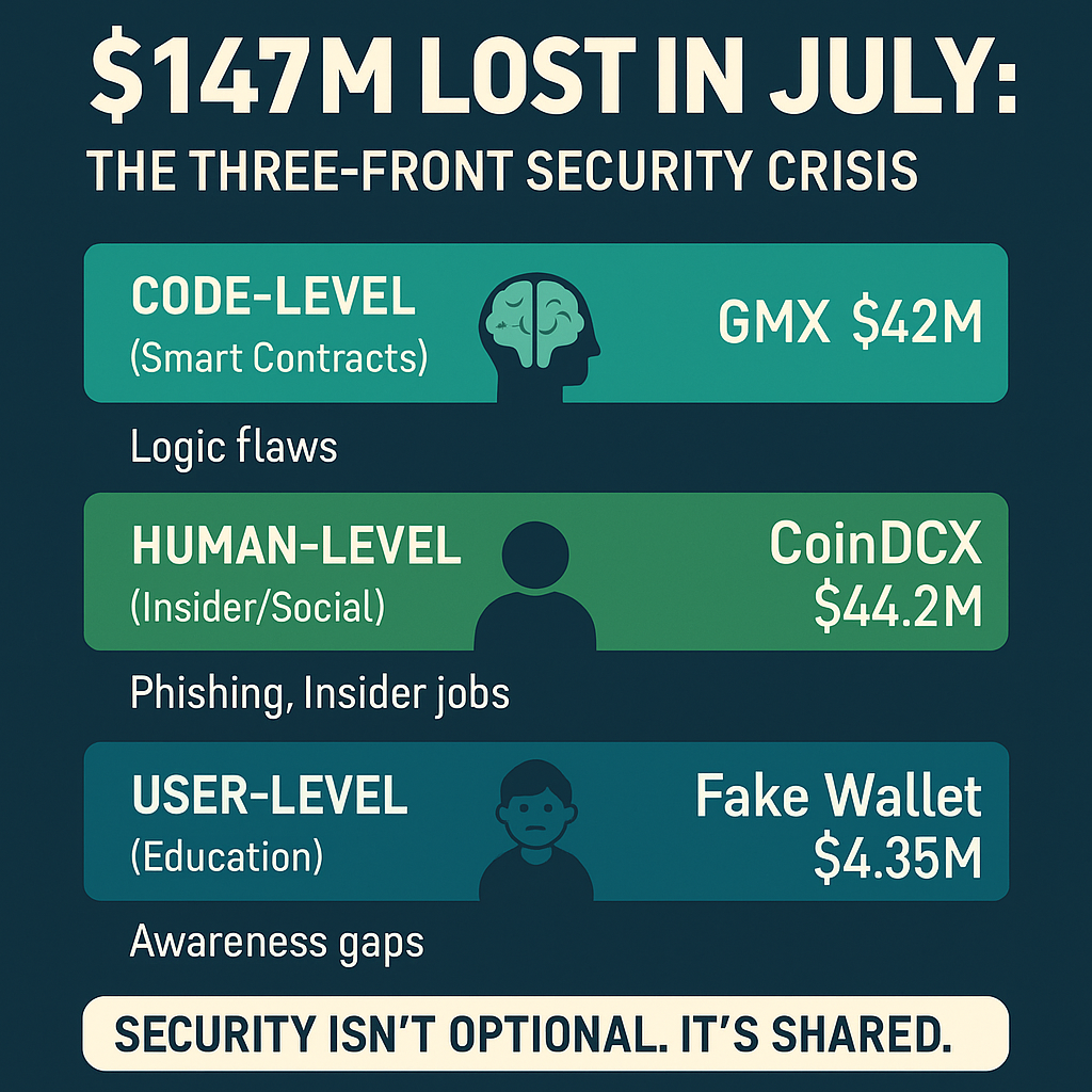 2025 yılının 5 Ağustos tarihinde, KuCoin en son Güvenlik Haftalık Kanalı'nı yayınladı ve bu rapor, Web3 ekosistemi için sarsıcı bir gerçekliği vurguladı. Blockchain güvenlik firması SlowMist'in verilerine dayanan rapora göre, Temmuz 2025'teki güvenlik olayları, yaklaşık147 milyon dolartutarda toplam kayıpla sonuçlandı. Bu rakamlar sadece kasvetli bir istatistikten ibaret değil; kripto dünyasında riskin bir anomali değil, geliştiricilerden sıradan kullanıcılara kadar her katılımcıyı etkileyen, içsel ve çok yönlü bir gerçeklik olduğunu açıkça hatırlatıyor.