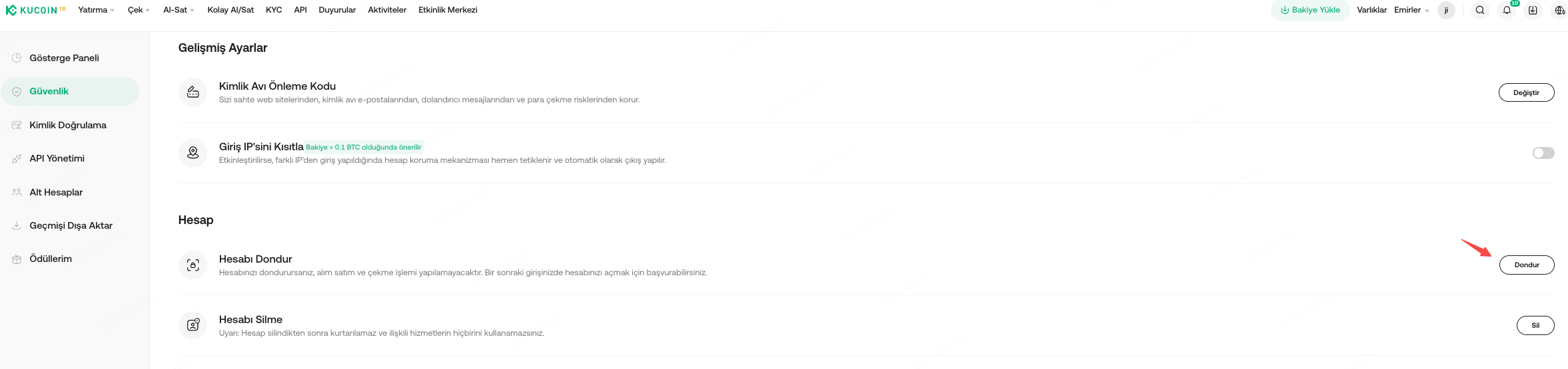 1. Hesabınızı Dondurma