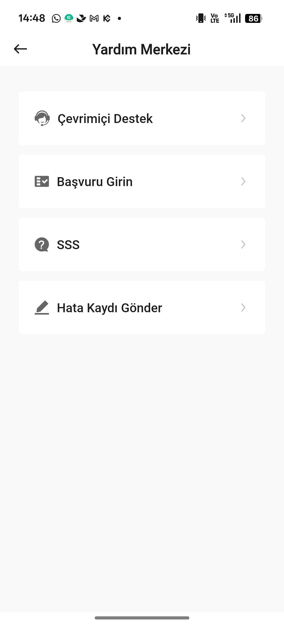 Uygulamaya giriş yapın, sol üst köşedeki profilinize dokunarak menüyü açın ve Destek → Çevrimiçi Destek seçeneğine tıklayın.