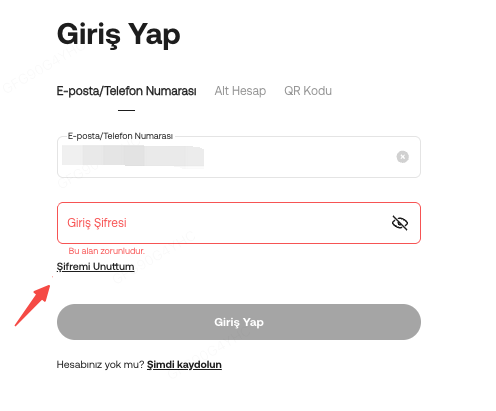 Adım 1: Giriş sayfasınageri dönün, telefon numaranızı veya e-posta adresinizi girin, ardından giriş şifrenizle "Giriş Yap"a tıklayın
