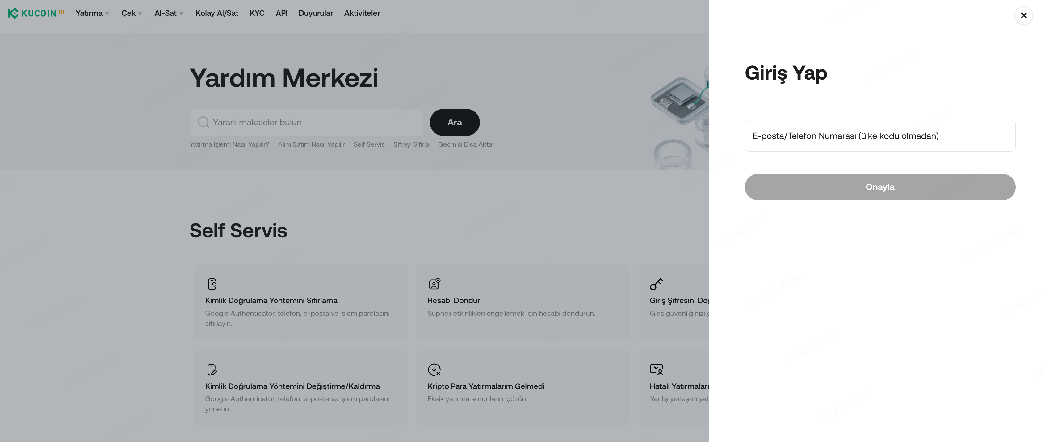 Giriş sayfasında “Güvenlik doğrulaması mevcut değil” ifadesini bulamıyorsanız, https://www.kucoin.tr/support Yardım sayfasından kimlik doğrulama yönteminizi sıfırlamayı düşünmenizi öneririz.